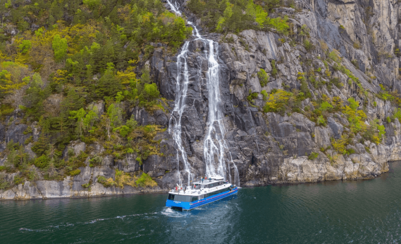 10:00フェリーに乗りノルウェーで最も象徴的なフィヨルドのひとつ、リーセフィヨルドを船上から観光します(約3時間30分)。そびえ立つ崖や壮大なプレーケストーレン、さらに滝の連続する光景などをお楽しみください。