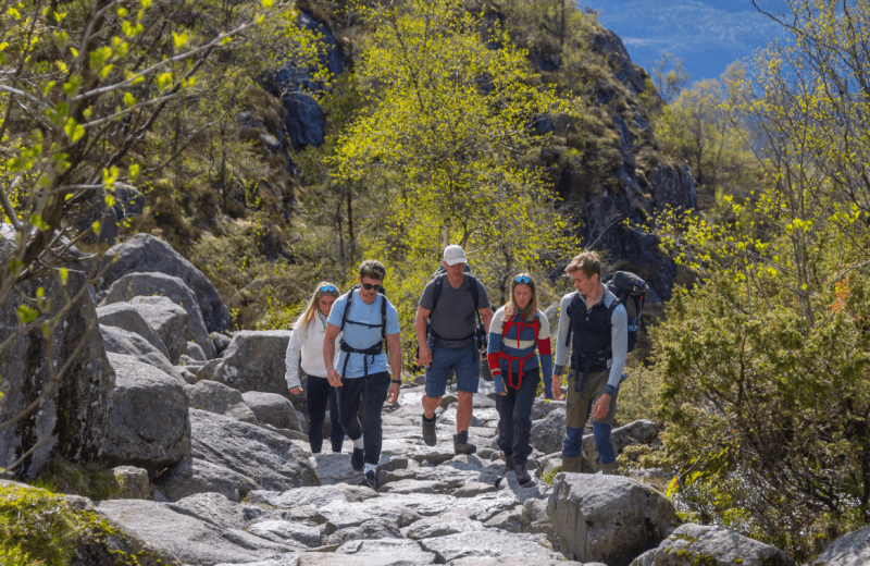 <プレーケストーレンへのハイキング追加プラン> 13時頃プレーケストーレヒュッテ到着後いよいよハイキング開始です。プレーケストーレンまで片道約2時間が目安です。ノルウェーで最も景色の美しい有名なハイキングの一つと言われており、トレイルは森や石の階段を通り、少々ハードですが、頂上プレーケストーレンから眺めるリーセフィヨルドの絶景が待っています。 プレーケストーレヒュッテへ戻り、18:15バスでスタヴァンゲルへ戻ります(約45分)。 |